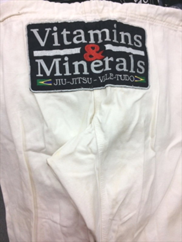 Vitamins & Minerals (Machado Base) Arona Model ビタミンズ & ミネラルズ アローナモデル 柔術衣 色:白 サイズ: A3(A2相当。洗濯により少し縮んでいます) 素材:綿100% Cotton 100% 製作:ブラジル製 made in Brazil Gold Weave 知る人ぞ知る 名ブランドMachado Kimonos の道着ベースで作られた Vitamins & Minerals ビタミネの道着。ヒカルド・アローナのロゴ入りです。ガッチリ系で今でもマニアは欲しがる道着です!色落ち・スレ・黄ばみ・多少の使用感はございますが、まだ練習着に使用可能です! 胸にロゴ Logo Patch と、背中にはビッグパッチ Big Patch on backが貼ってあり、超レアな道着です。 上下セットの重さ:2300g 洗濯方法や干し方により縮む場合がございますので、ご注意下さい。 この商品は、破れほつれなどはございませんが、新品ではなく中古品ですので、その点御理解の上お買い求めください。 そのため詳細写真を必ずご確認ください。 汚れや使用感などの理由での交換・返品はお受けすることはできませんのでご注意下さい。