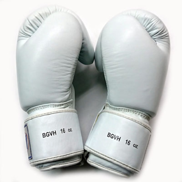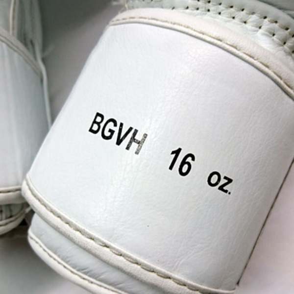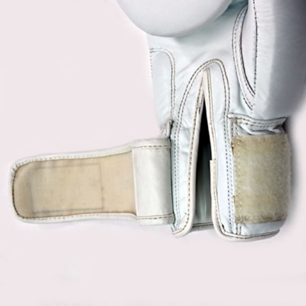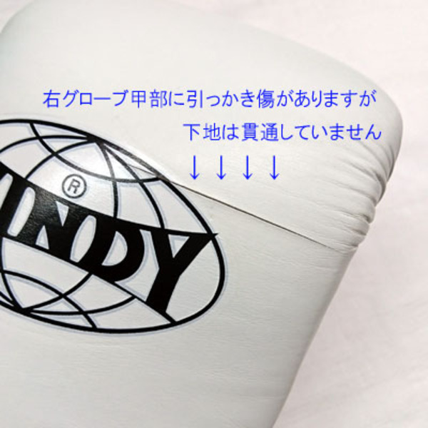 色: 白 White 高級本革のパンチンググローブ。右手甲部に、7センチほどの引っかき傷(下地は貫通していません)があります。僅かな汚れできれいな状態です。当社にて除菌クリーニング済です。 (参考:定価9,000円前後の品)