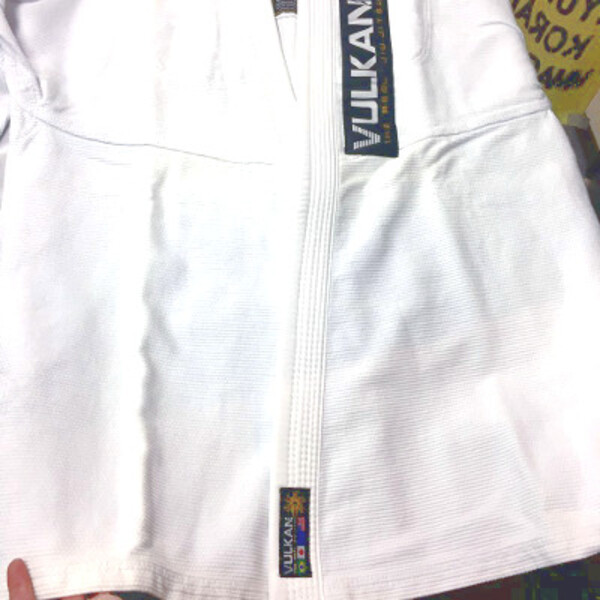 50%オフ!! 14,200円⇒7,100円に!! ブルカンの柔術衣 Pro Light Model A4-size SingleWeave 色:白 素材:綿100%ブラジル製 超人気ブランドVULKAN。 上着:前側中央部分に蛍光灯焼けのあとがあります。お買い得品 !! (機能的には問題ないです) 防縮加工済みで縮みにくいです。 A4: 190cm - 200cm / - 120kg A4上着-胸幅:約70cm、着丈:約85cm、裄:約88cm、袖口幅:約20cm A4ズボン-ウェスト幅:約65cm、ズボン丈:約106cm、股下:約71cm