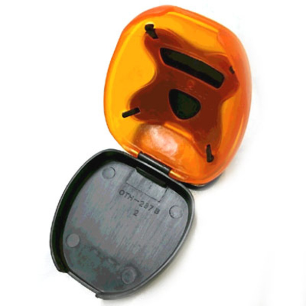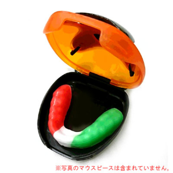 色: 黒オレンジ Black Orange ショックドクターの抗菌マウスピースケースです。クールなデザインの強化シェルルーフ下に通気孔、下部へ水切り孔が設けられており、ケース内の乾燥を保持します。便利な金属クリップ(カラビナ)を装備、ベルトホルダーやバッグへ容易に装着できます。底面に擦り傷がありますが、破損はありません。当社にて除菌クリーニング済です。 (参考:定価1,500円前後の品)