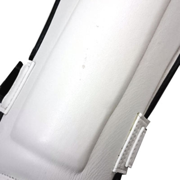 色: 白 Lサイズ レッグガード。すねサポーター。シンガード。マジックテープ式で高級本革製。所々に擦れ汚れがありますが、大きな傷み破れはありません。当社の可能な範囲にて除菌クリーニング済です。 (参考:定価8,000円前後) [注意]返品・交換はできません。