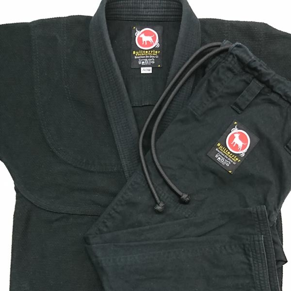 BULLTERRIER柔術衣 ST4.1モデル 上下 色:黒 Black 素材:綿100% サイズ:A0W 全体的に色褪せ・毛羽立ちが見られますが、大きなダメージはありません。 洗濯済みです。 オリジナル道着袋は付いていません。(帯は別売りです。) ※返品・交換はできません。 【平置き実寸】上衣-胸幅:約51cm着丈:約70cm裄:約73cm袖口幅:約14cm ズボン-ウエスト幅約50cmズボン丈約81cm股下約57cm