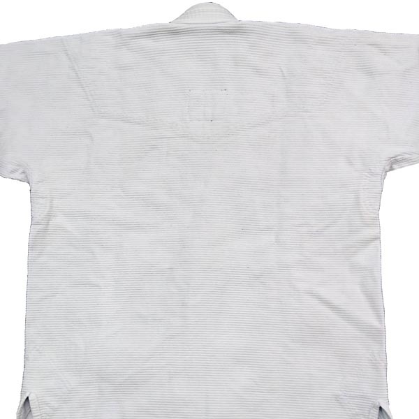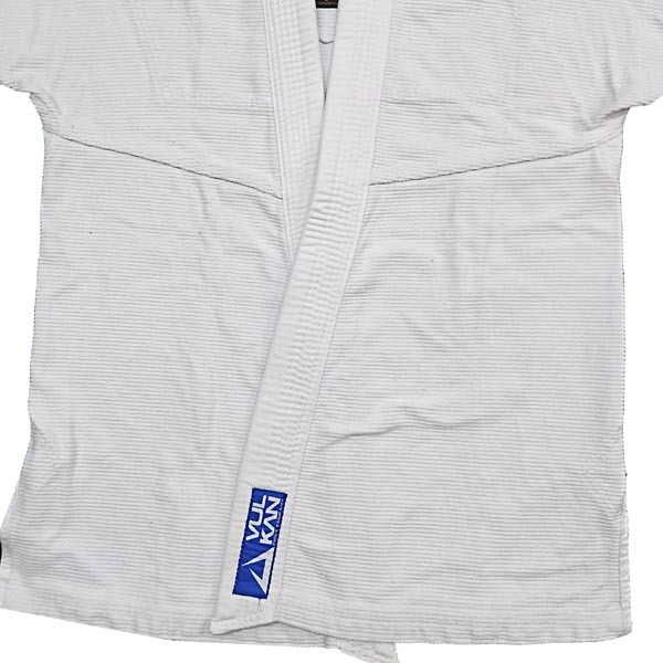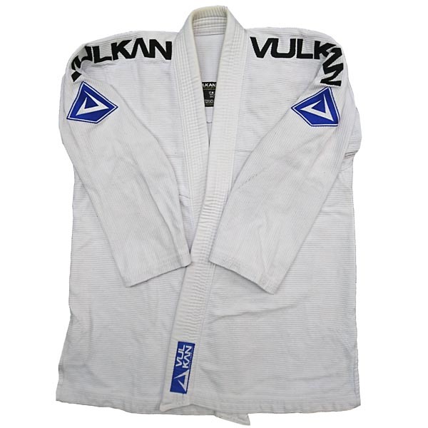 ブルカンの柔術衣 Viper SFC Pro Limited Edition Model A0-size Pearl Weave 色:白 素材:綿100%ブラジル製 超人気ブランドVULKAN。 襟・袖周りに色染み、全体的に使用感がありますが、大きなダメージは見当たりません。 洗濯済みです。 【平置き実寸】上着-胸幅:約52cm、着丈:約70cm、裄:約71cm、袖口幅:約14cm ズボン-ウェスト幅:約54cm、ズボン丈:約81cm、股下:約60cm ※返品・交換はできません。